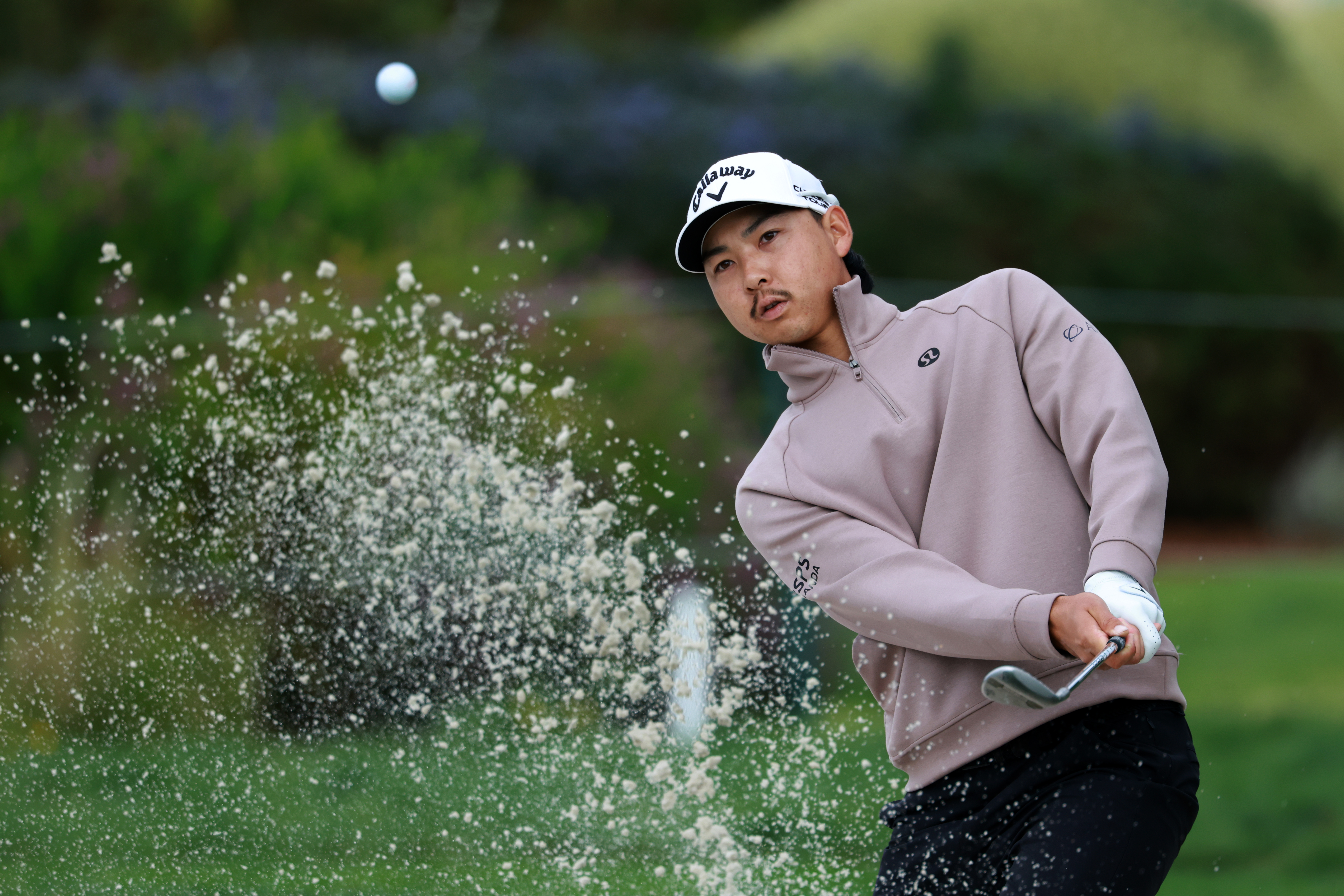 On the upslope, the American gets greedy, with his iron shot striking the lip and popping up in the air.