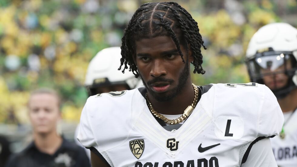 Colorado and Deion Sanders fell out of The Associated Press college football poll on Sunday after a resounding loss in one of the weekend’s showcase games, and the teams toward the top of the rankings were shuffled and tightened.
