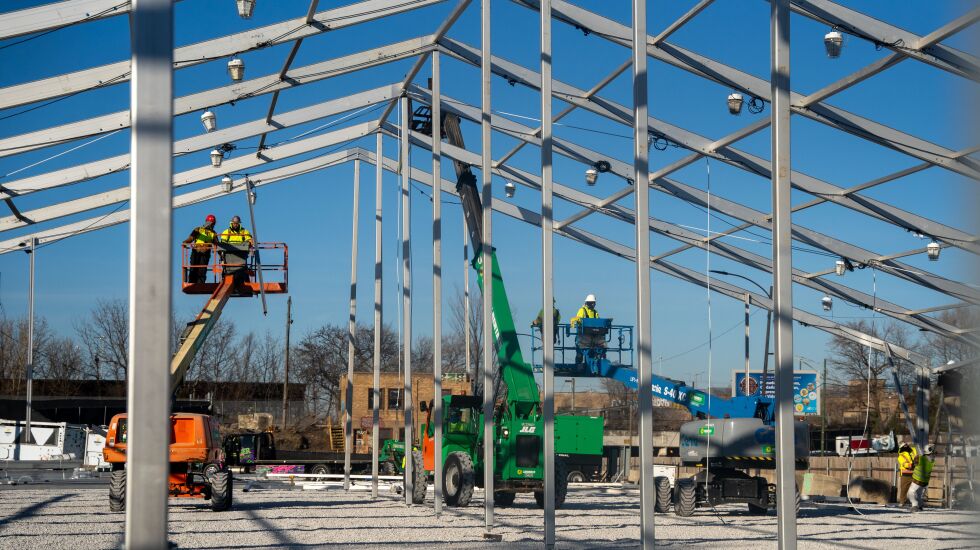 GardaWorld, el controversial contratista elegido para construir las carpas, comenzó a llevar equipos al sitio en el vecindario de Brighton Park esta semana y erigió una estructura a lo largo de California Avenue. Se colocaron marcos adicionales a lo largo de la calle 38th.