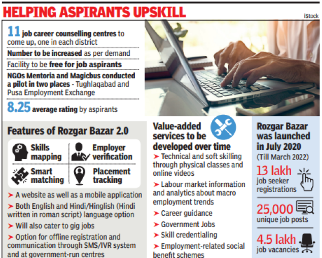 NEW DELHI: Delhi government will soon open career counselling centres for job aspirants in each of the capital’s 11 districts. These centres will be linked with Rozgar Bazar 2.0, the upgraded version of the job portal run by the state government.