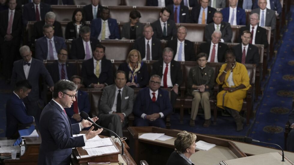 In a letter to colleagues, House Speaker Mike Johnson said Sunday the agreement would secure $16 billion in additional spending cuts from the previous agreement brokered by then-Speaker Kevin McCarthy and President Joe Biden and is about $30 billion less than what the Senate was considering.