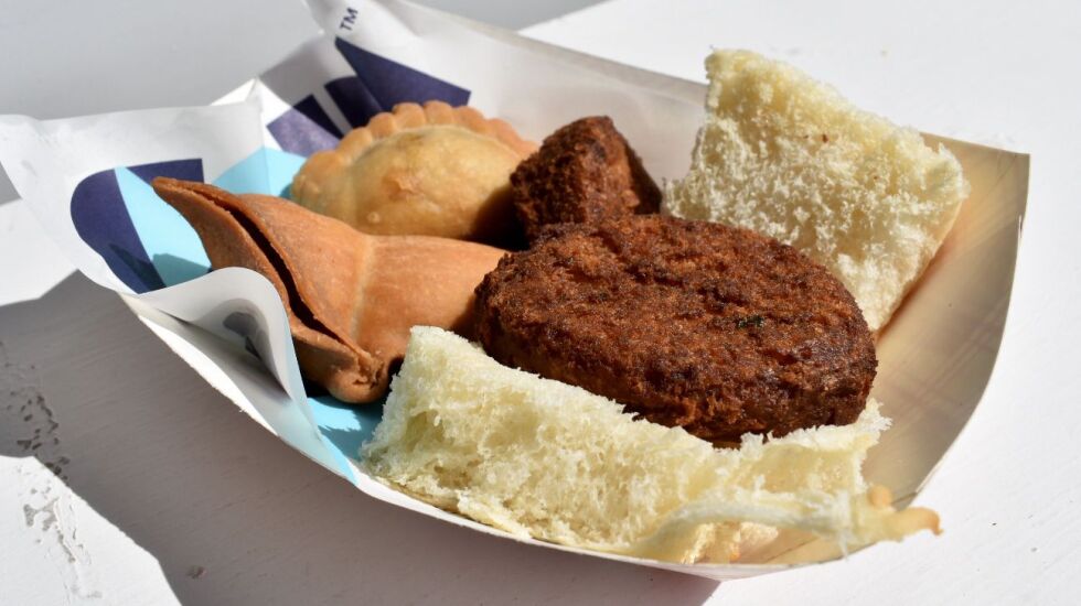 A steady afternoon stream of customers sidled up to the Flippin’ Fish Shack counter, which also listed copi rangoon, sliders and empanadas on the menu.