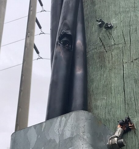 "He's torn this live cable from a pole, creating a flash over a large outage, and started grass fires."