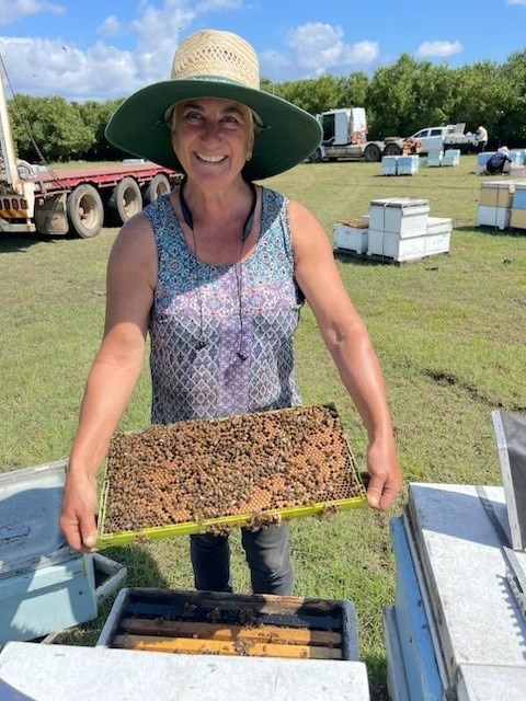 She works for NT Bees and spends 11 months of the year travelling with her bees to pollinate crops all over Australia.