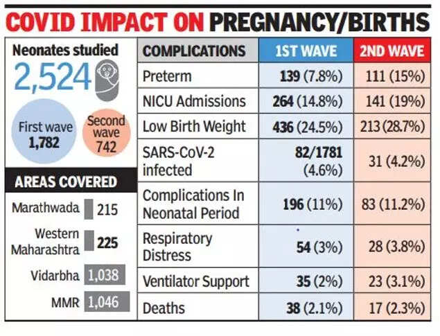 The study looked at 2,524 neonates, a child less than four weeks in age, born to mothers who had suffered from Covid during the first (April 1, 2020 - January 31, 2021) or the second wave (February - July 15, 2021); while 1,782 were first-wave births, the remaining 742 were from the second-wave group.