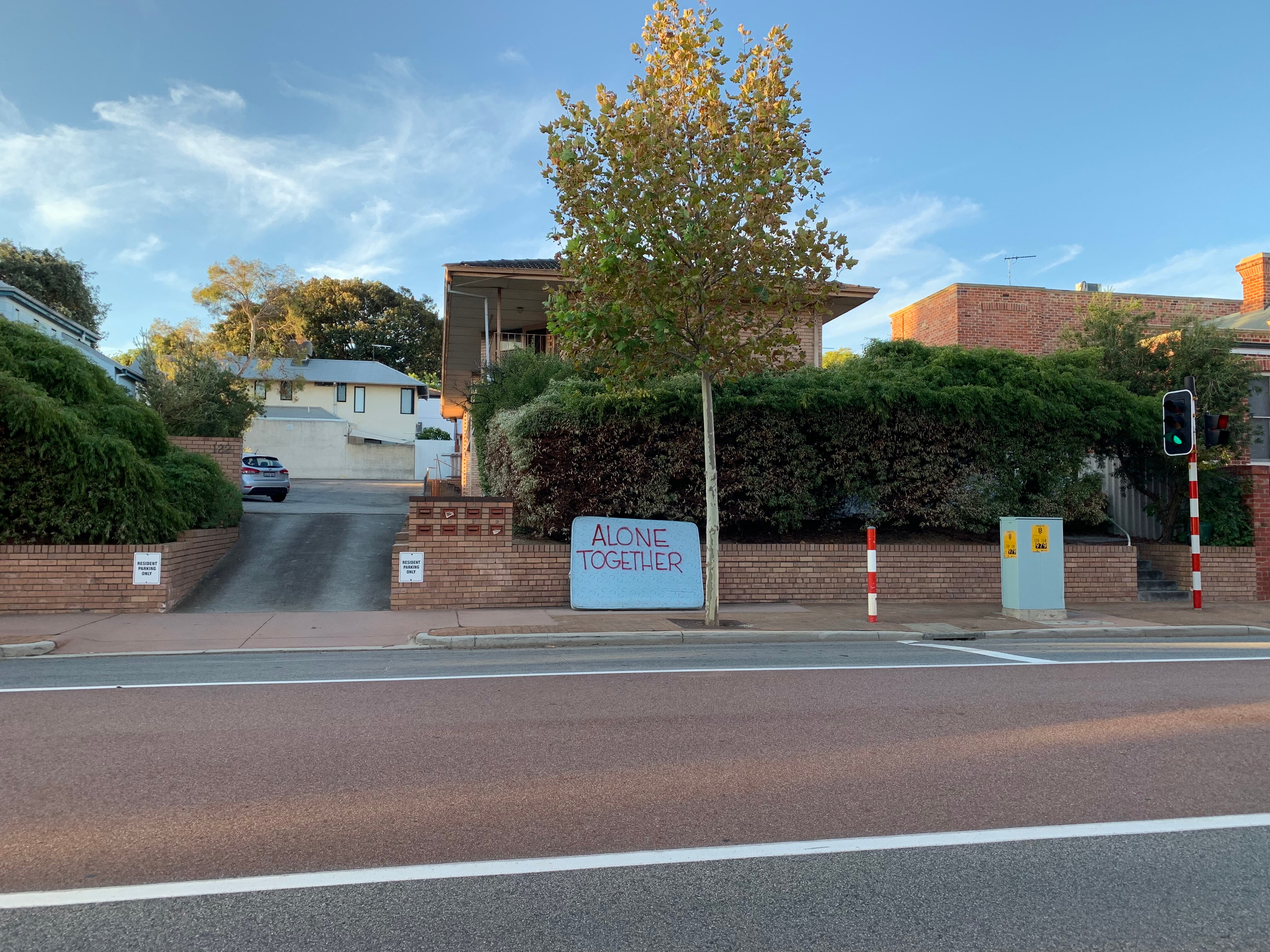 Slogans like this started popping up around Perth as people banded together to face the crisis. Image: Damian Smith.
