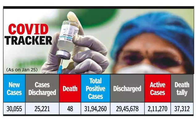 On Tuesday, 9,451 new Covid cases were reported — a nearly 11% drop over Monday’s count of 10,585. On January 22, 11,253 new infections had been detected, which dropped by 6% the next day.