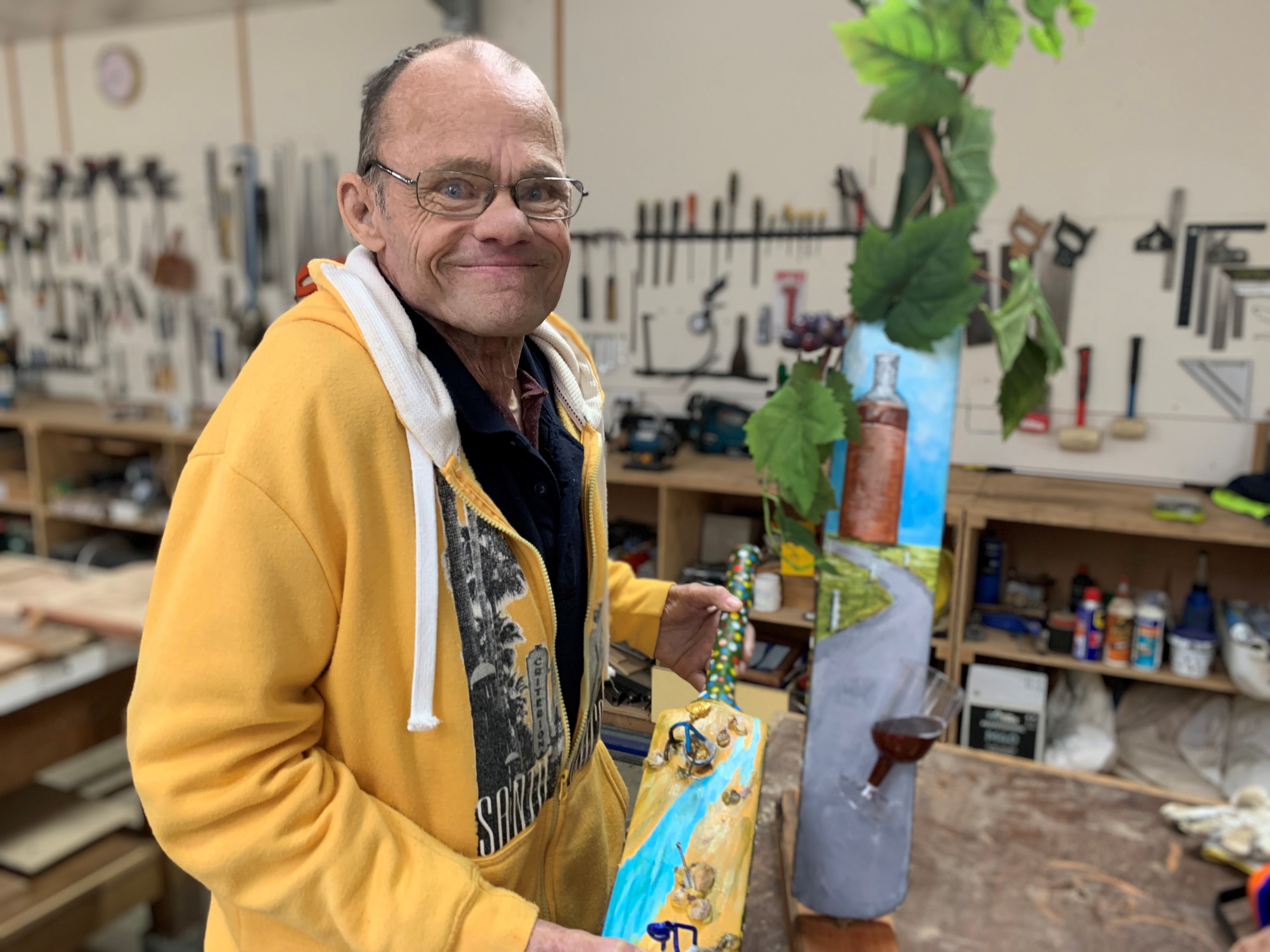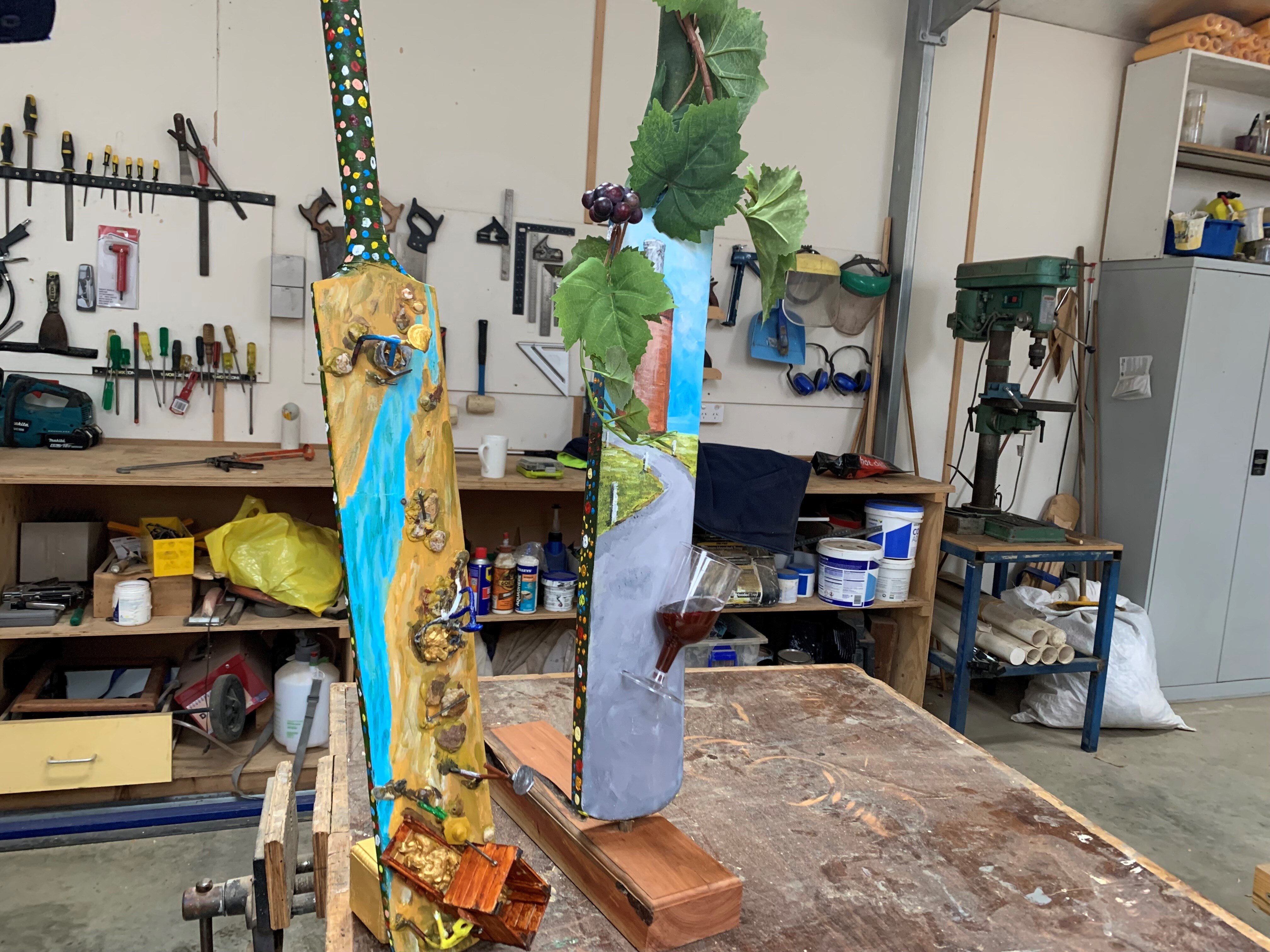 "One bat has vine leaves and a bottle of red on it. The gold mining one includes figurines made from bent nails," he said.