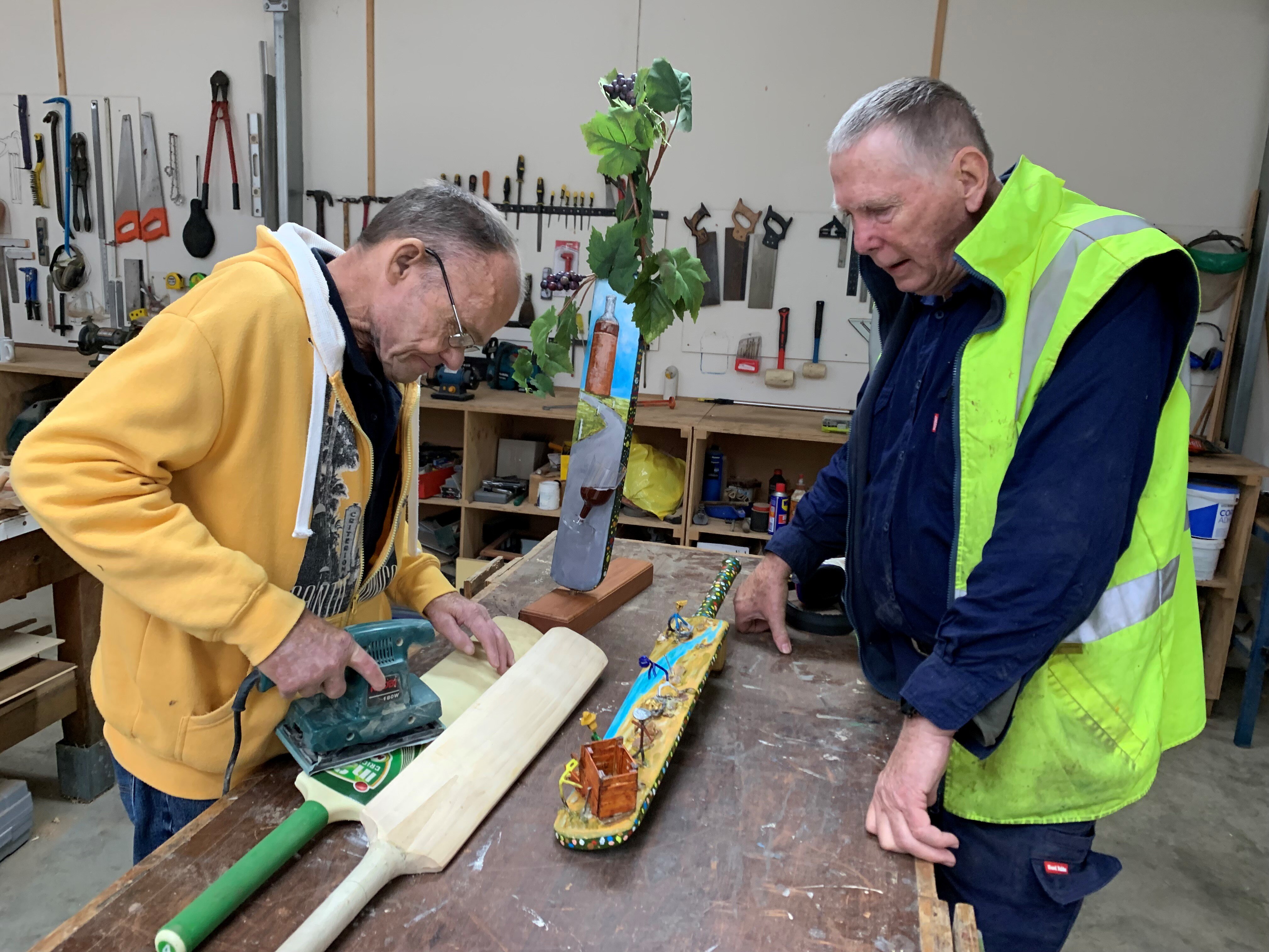 When the charity organisation Where there's a Will challenged men's sheds across Australia to get members to turn an old cricket bat into a piece of art, the Rutherglen Community Men's Shed was keen to take part.