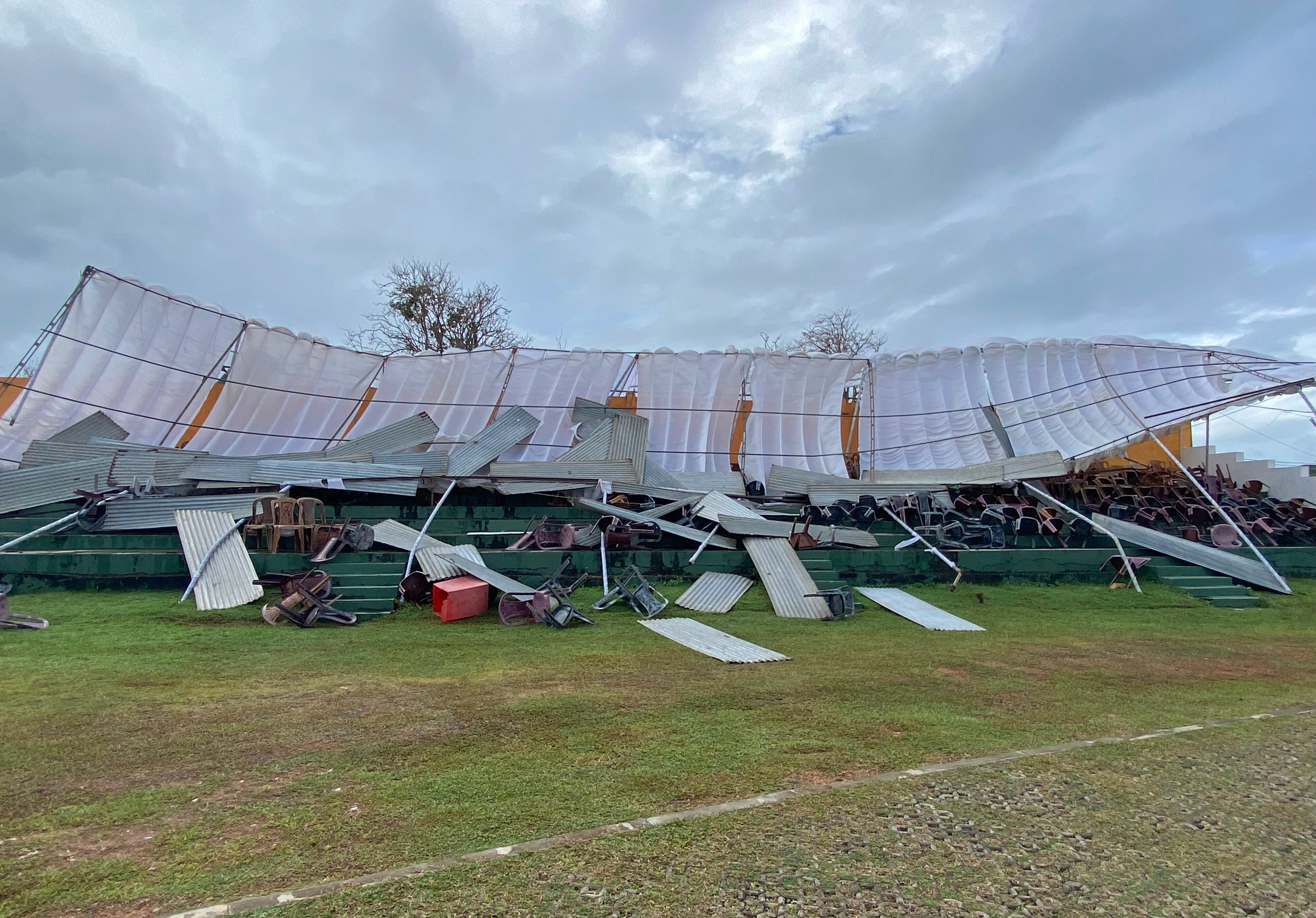 Metal sheets on the temporary eastern stand began blowing off about an hour prior to the scheduled start of play at 10am local time, before the entire roof buckled and collapsed.