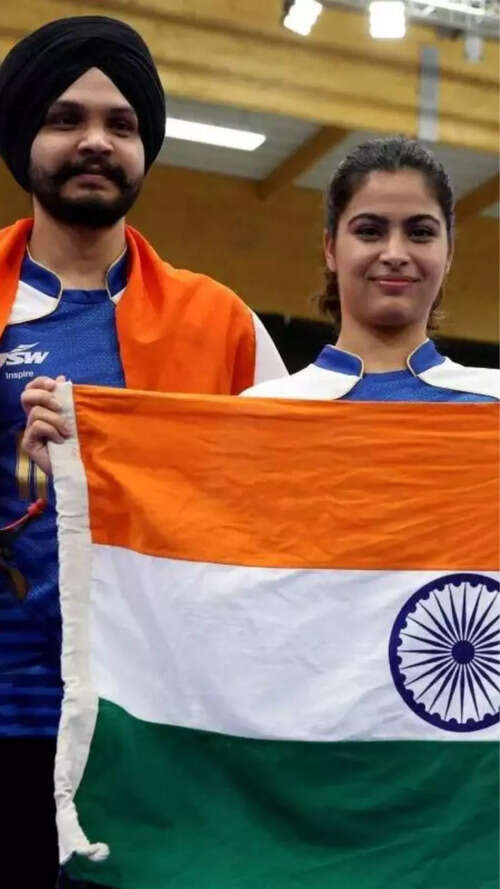 <p><br /><br />Manu Bhaker kicked off India's medal count at the Paris Olympics by clinching a bronze, becoming the first Indian woman to achieve an Olympic shooting medal.<br /><br /><br /></p>PTI4/10:Manu Bhaker and Sarabjot Singh