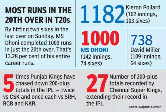 CHENNAI: Chennai Super Kings got a taste of their own medicine, that too in their own den. In a match full of dramatic twists and turns, Zimbabwe allrounder Sikandar Raza played an audacious chip shot over the head of square leg to get three runs of the last ball that helped Punjab Kings chase down a daunting 201 for a four-wicket win.