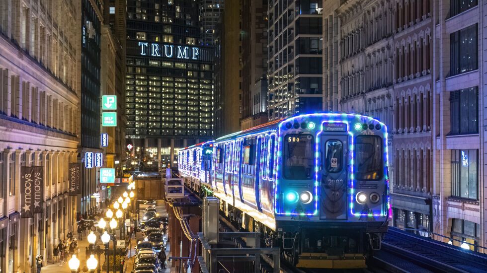 The CTA holiday train returned Friday afternoon, bringing thousands of lights and Santa’s sleigh with it across the city’s Green and Orange Line tracks.