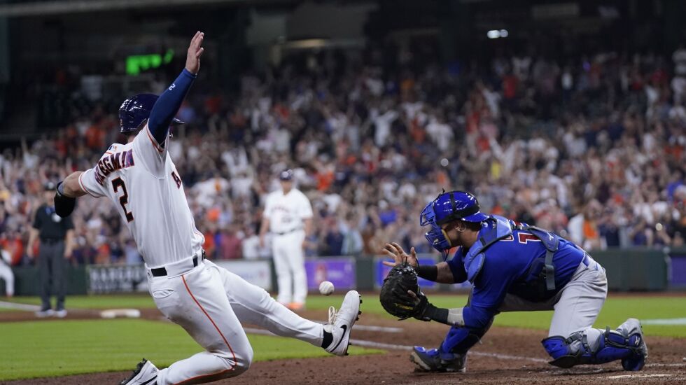 HOUSTON — The final play at the plate was close — so close that the Cubs challenged the safe call at home as the Astros set off their fireworks.
