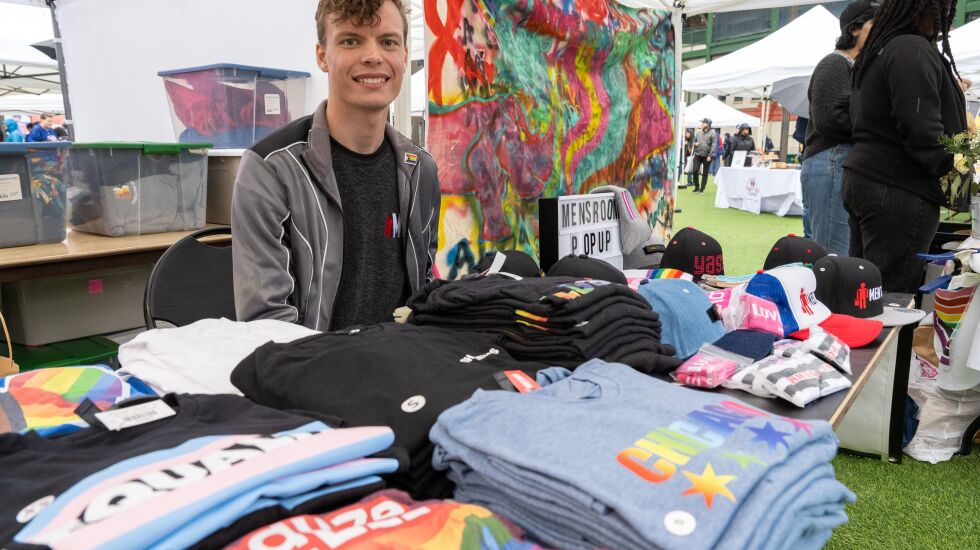 Jacob Dunskis manned the booth for Men’s Room Chicago, a business in Boystown that specializes in men’s fashion and also has a barbershop. But Dunskis said the store has been expanding its merchandise to be more inclusive.