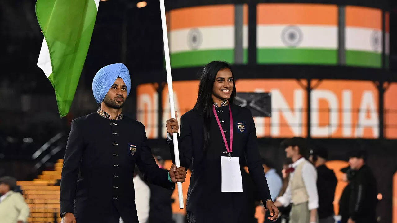 The countries from Africa, America, Asia, the Caribbean followed, and then came the turn of 2010 Games host India, with double Olympics medallist badminton ace PV Sindhu and men's hockey team captain Manpreet Singh leading the contingent out amid loud cheers from the stands.