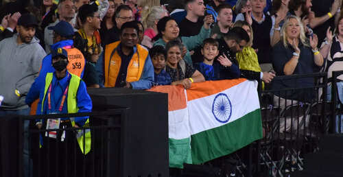 <p>Indian fans inside the OC venue, the Alexander Stadium, waited patiently to welcome their stars (Photo: SAI Twitter) </p>6/10:March-past