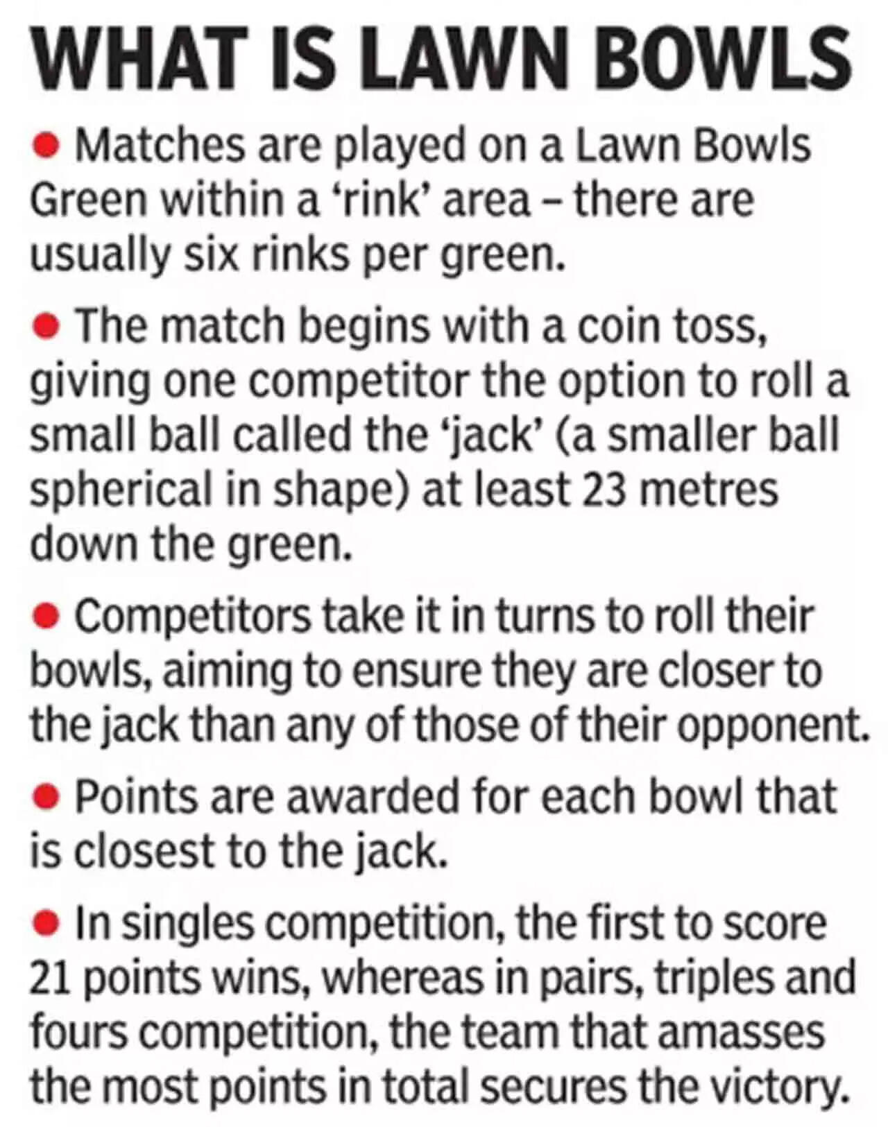 In singles competition, the first to score 21 points will win, whereas in pairs, triples, and fours competitions, the team that has amassed the most points in total will secure the victory. (INFO: Birmingham 2022)