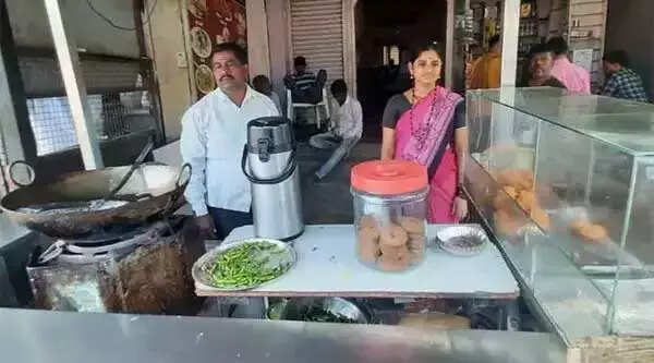 Sanket's father and mother Mahadev Ananda Sargar and Rajashree at their tea cart. (Credit: TOI Special Arrangement)