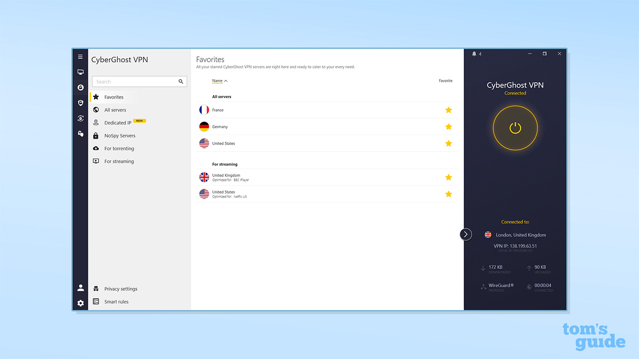 CyberGhost only provides a kill switch for Windows, so if you use Mac, Android, or iOS, you’re out of luck. We tested the kill switch while connected via WireGuard, OpenVPN, and IKEv2. It did what it was supposed to do: block internet traffic the second the VPN dropped.