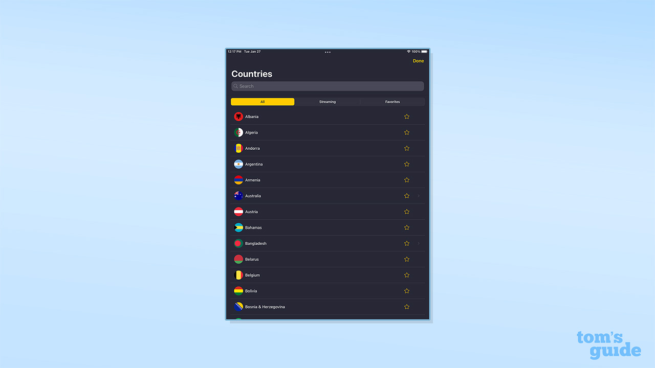 The server list is well-organized. All the servers are listed alphabetically under one tab, streaming servers with specific unblocking recommendations (e.g., DAZN, ESPN, etc.) clearly shown, and a favorites tab where you can add servers you know you’ll frequent. You can add any location to your Favorites list with a click. All your most commonly used servers will then be accessible from a single tab – no more scrolling required.