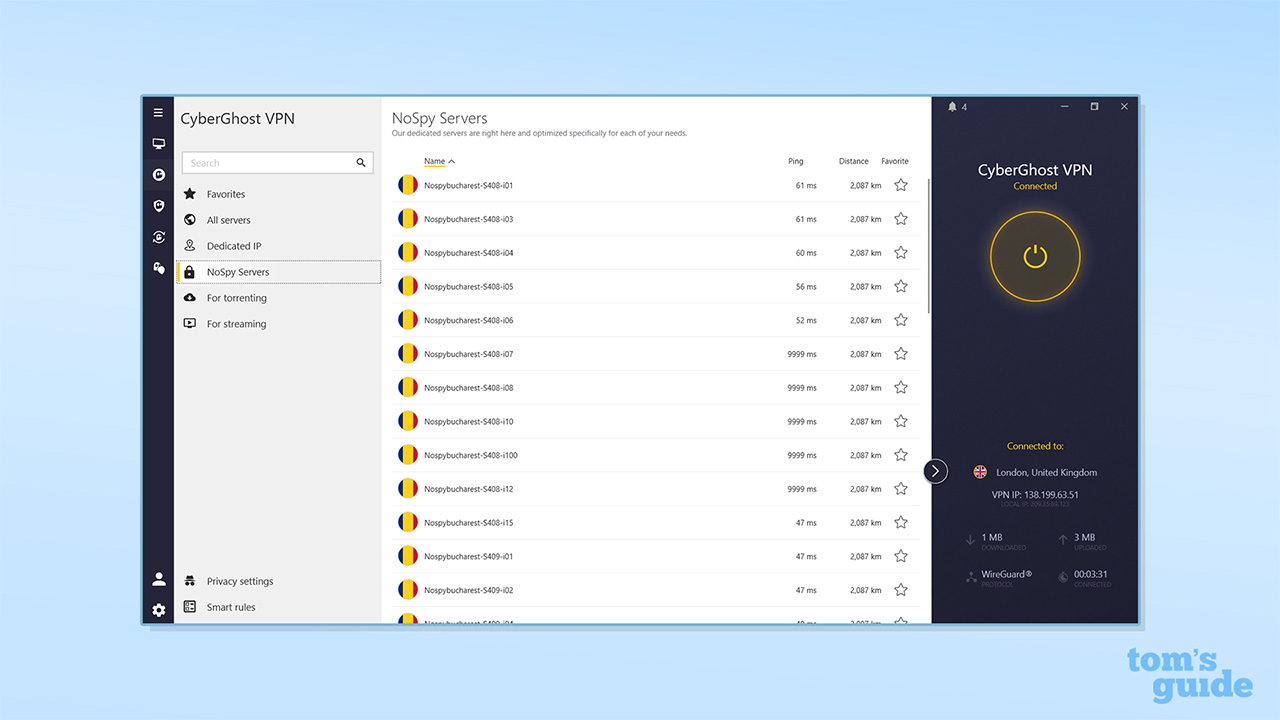 On the NoSpy information page on its website, it also mentioned it has ‘many colocated servers’ which are hosted by a third-party data center, but owned and operated by CyberGhost. The VPN claims this has benefits, one of which is the ability to "choose top-tier server hardware to give you better performance," and "configure the server and equip it with the latest technologies."