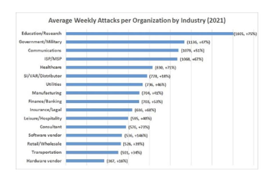 Businesses Suffered 50% More Cyberattack Attempts per Week in 2021 Businesses Suffered 50% More Cyberattack Attempts per Week in 2021 (darkreading.com)