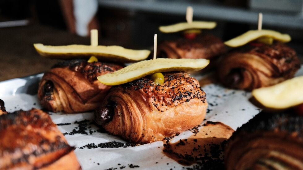 The new Chicago Style Croissant, available starting Jan. 2, features a char-dog rolled into a pastry lined with mustard, relish and onions. Definitely no ketchup. It’s topped with poppy seeds and celery salt and garnished with a tomato, pepper and pickle.