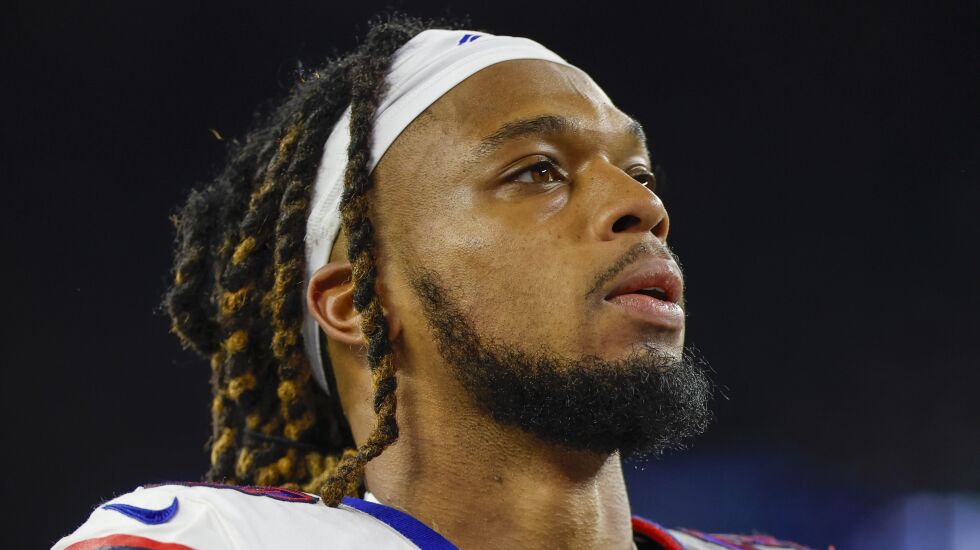 Hamlin was hurt in the first quarter when he was struck squarely in the chest while making what appeared to be routine tackle of Bengals receiver Tee Higgins. Hamlin briefly got up and adjusted his facemask before collapsing backward.