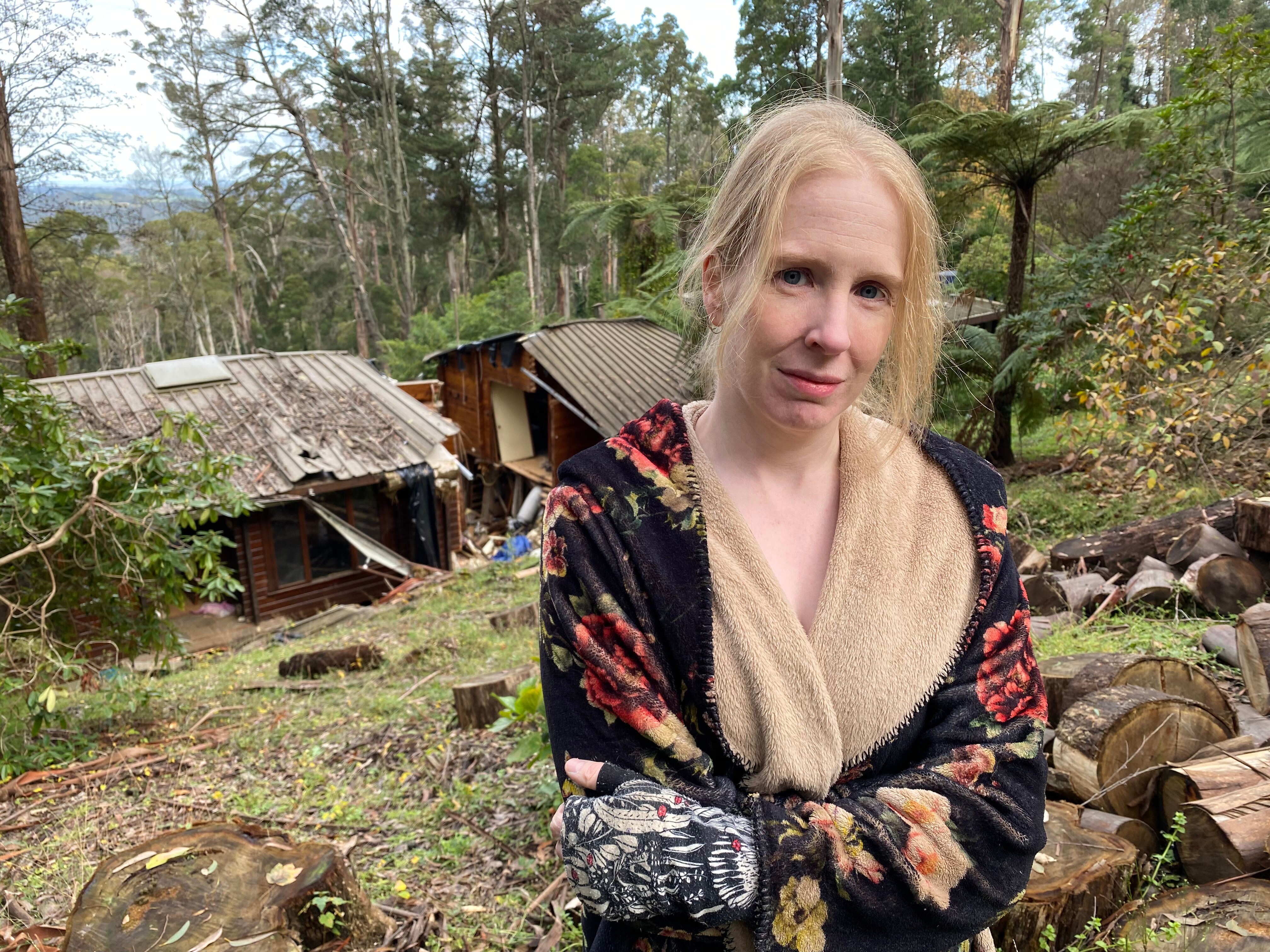 Kate Naughton was reading a book at home in Ferny Creek on Mount Dandenong, when her house was sliced in half by a tree.