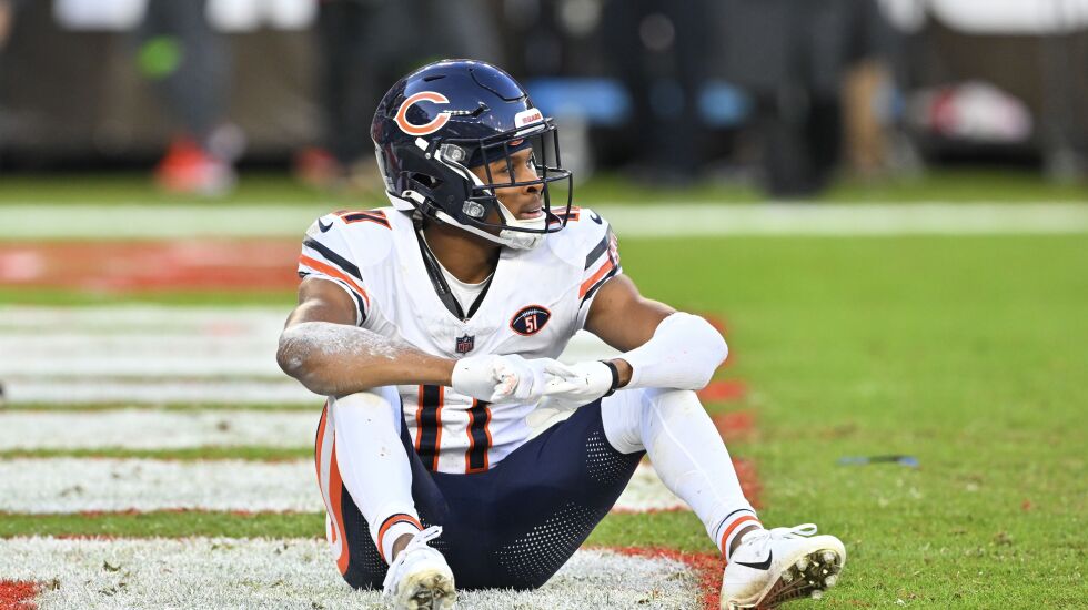 Running back D’onta Foreman (personal), wide receiver Equanimeous St. Brown (pectoral) and linebacker Noah Sewell (knee) did not practice. Tight end Cole Kmet (quad), cornerback Jaylon Jones (calf) and running back Travis Homer (hamstring) were limited in practice.