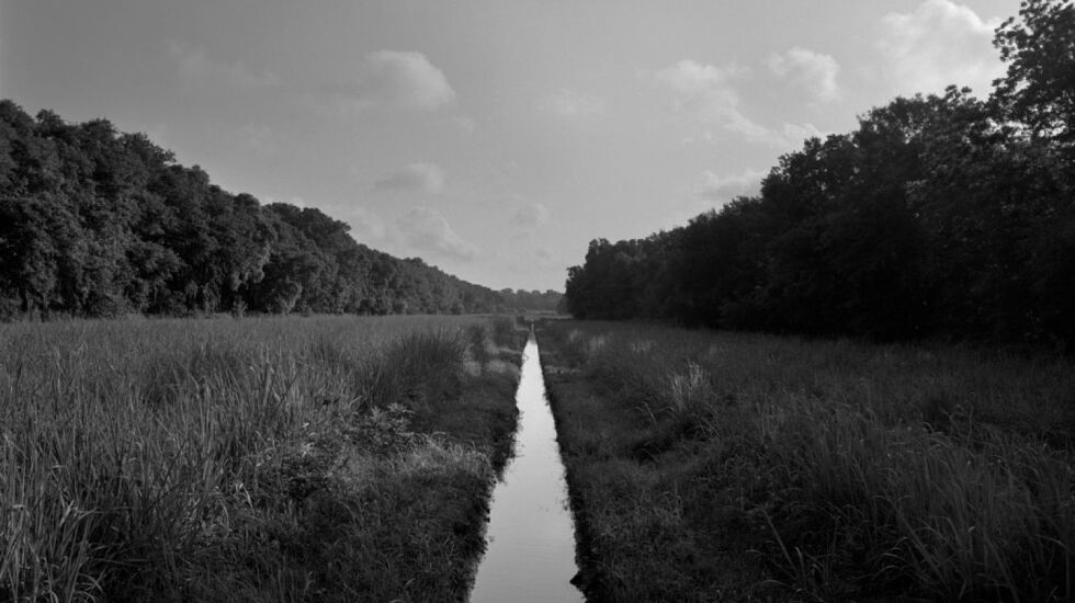 From there, the Columbia College Chicago professor stepped further back in time and turned his camera to the places from which Black slaves escaped — the west banks of the Mississippi River in Louisiana, where more than 350 plantations once stood. This set of images, which Bey titled “In This Here Place,” focuses on Evergreen plantation, a well-preserved sugar cane plantation and historic landmark about 45 miles upriver from New Orleans.