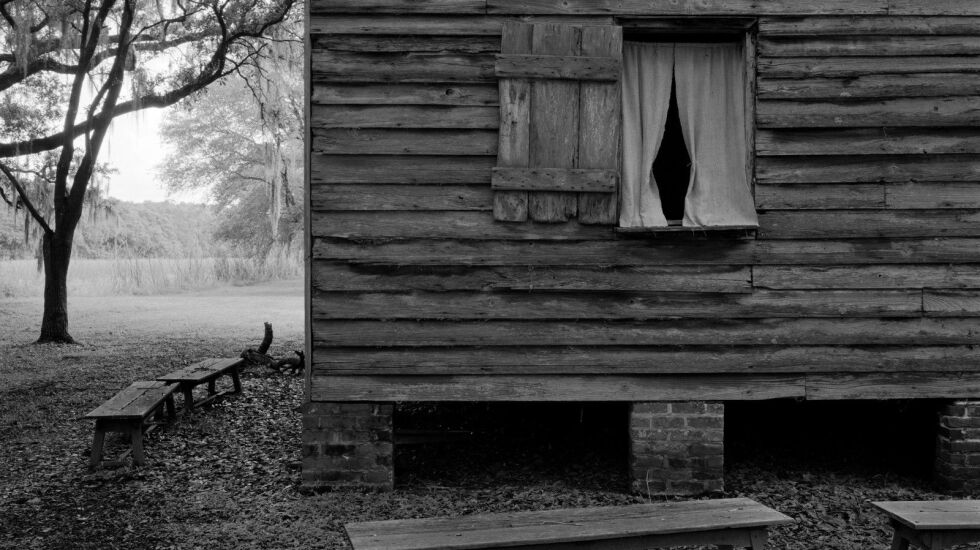 “This slave cabin is from Evergreen plantation and is one of the 22 intact cabins that remain on the site. One of the reasons they’re so well-preserved is that they were occupied until as recently as 1947 by people who were the descendants of the enslaved. People who lived here as sharecroppers on the same land where their family had once been slaves. They lived here with no running water. No bathroom facilities. This cabin looks like someone just got up and walked away from the scene. There are benches still there. Even the parted curtain, it has a very haunted and haunting feeling to it.”