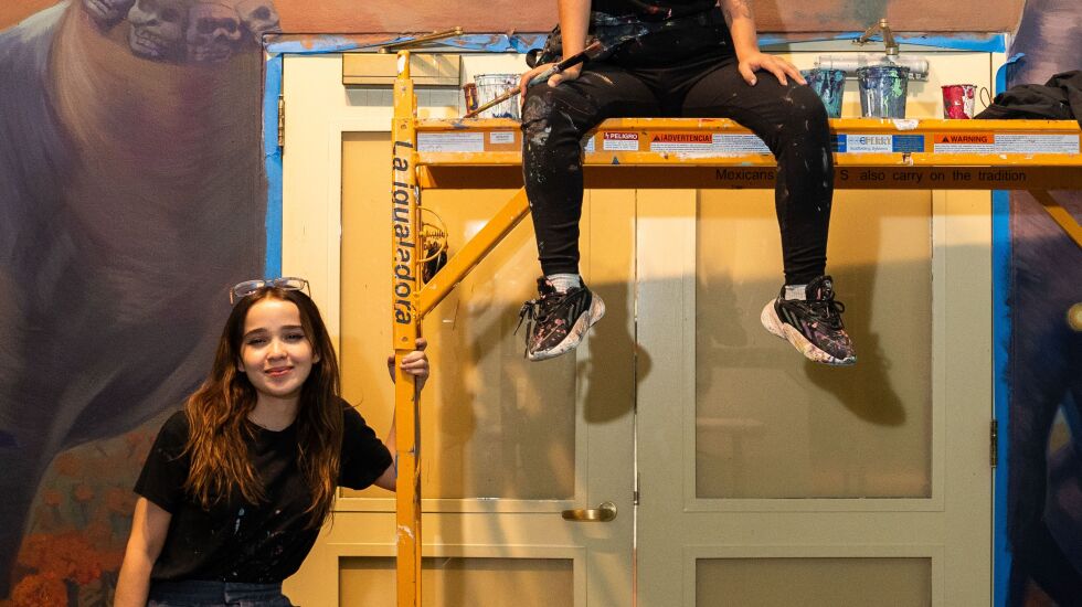 Dolores “YUDA” Navarro and Janín García painted a large mural inside the museum called “Guide.” Both street artists from Mexico, they are “very proud to be able to cross borders with the things we do,” García said during a chat at the museum.