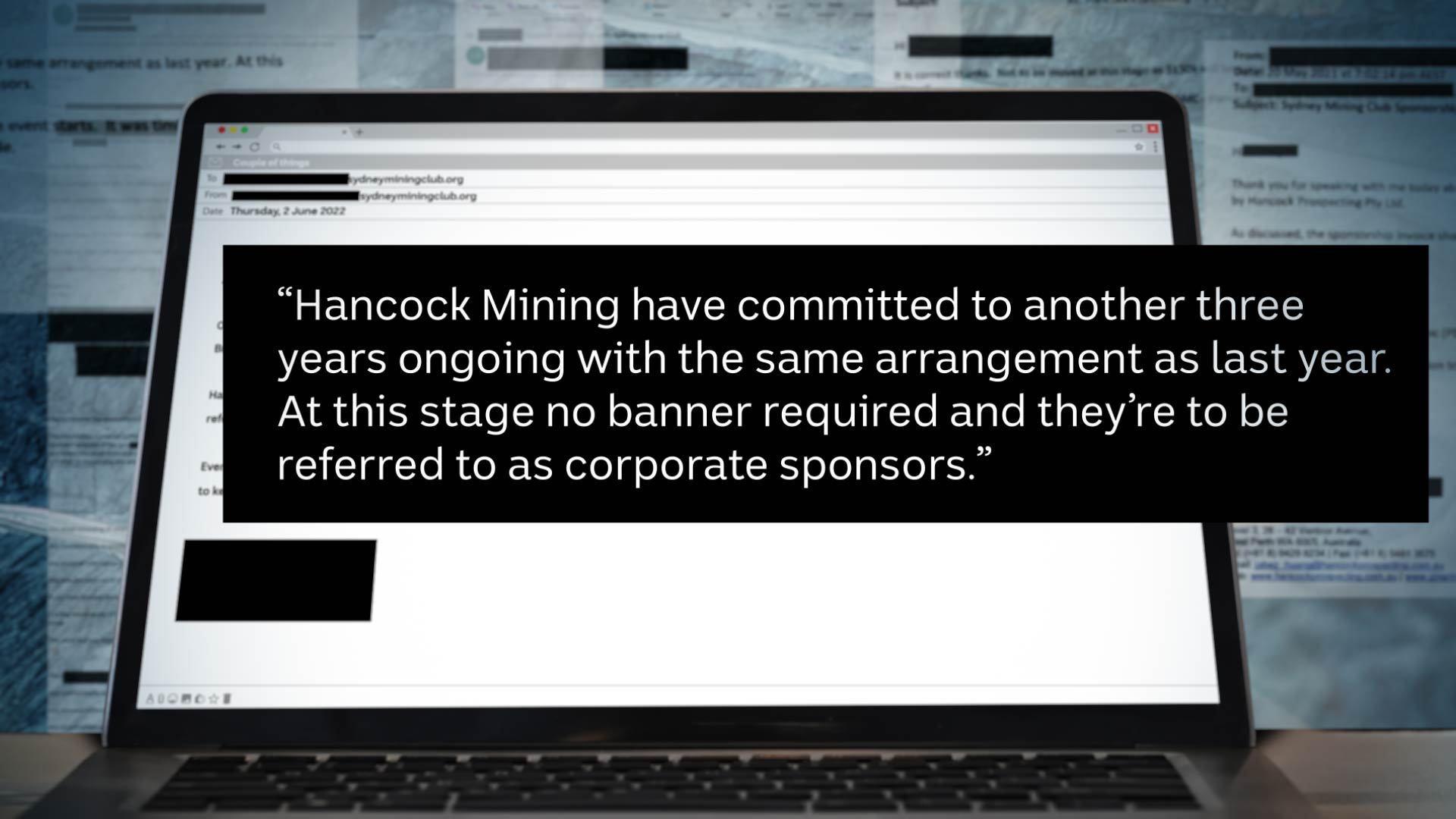 Hancock Prospecting paid Sydney Mining Club $190,000 for what both parties described in separate emails as a "sponsorship" in May and July 2021.
