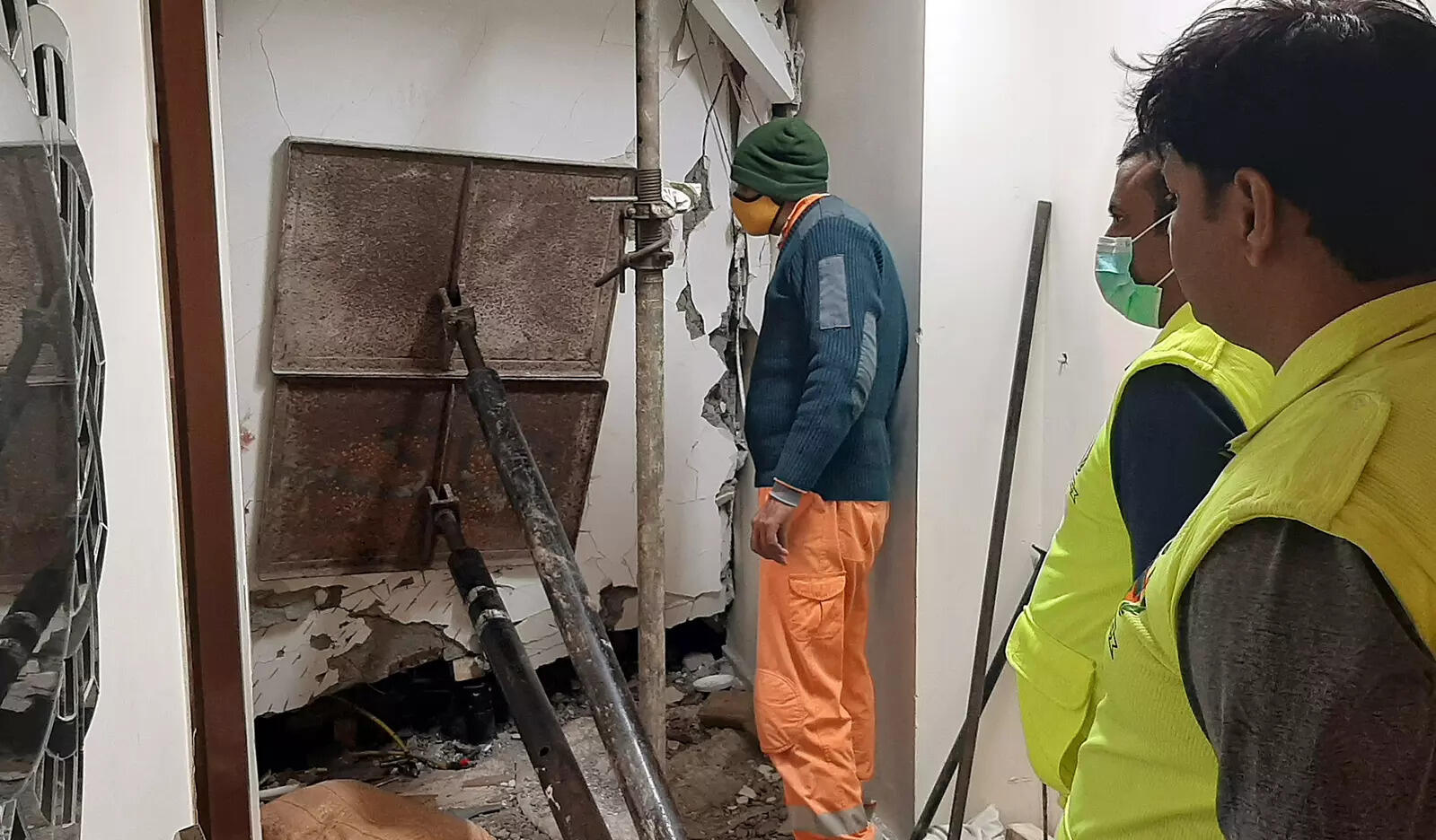 The Gurugram district administration also instituted a probe into the collapse of roofs of the drawing rooms of flats one below another.