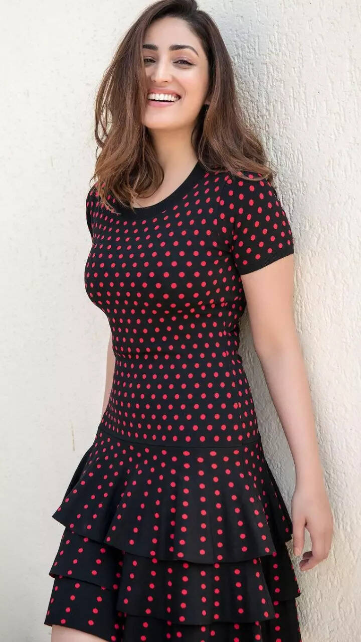 Yami Gautam oozes oomph in this gorgeous brown and red polka-dot dress.