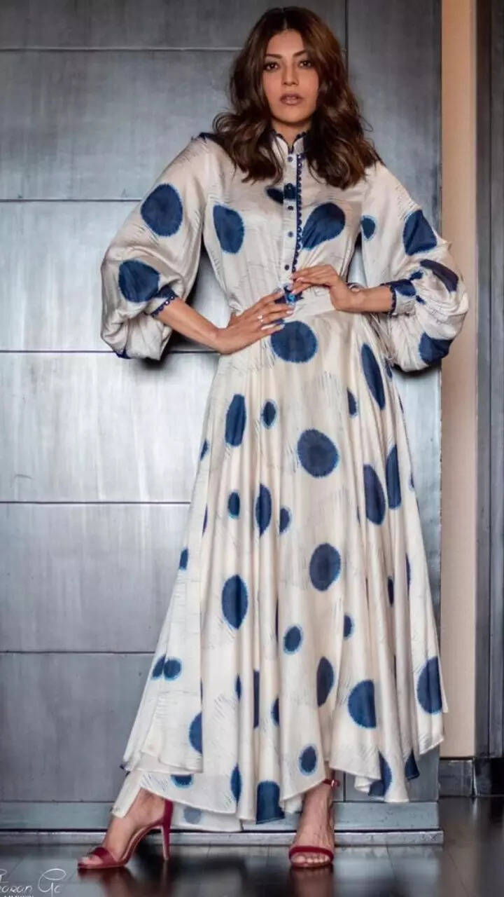 Kajal Aggarwal clicked in chic polka dot maxi dress.