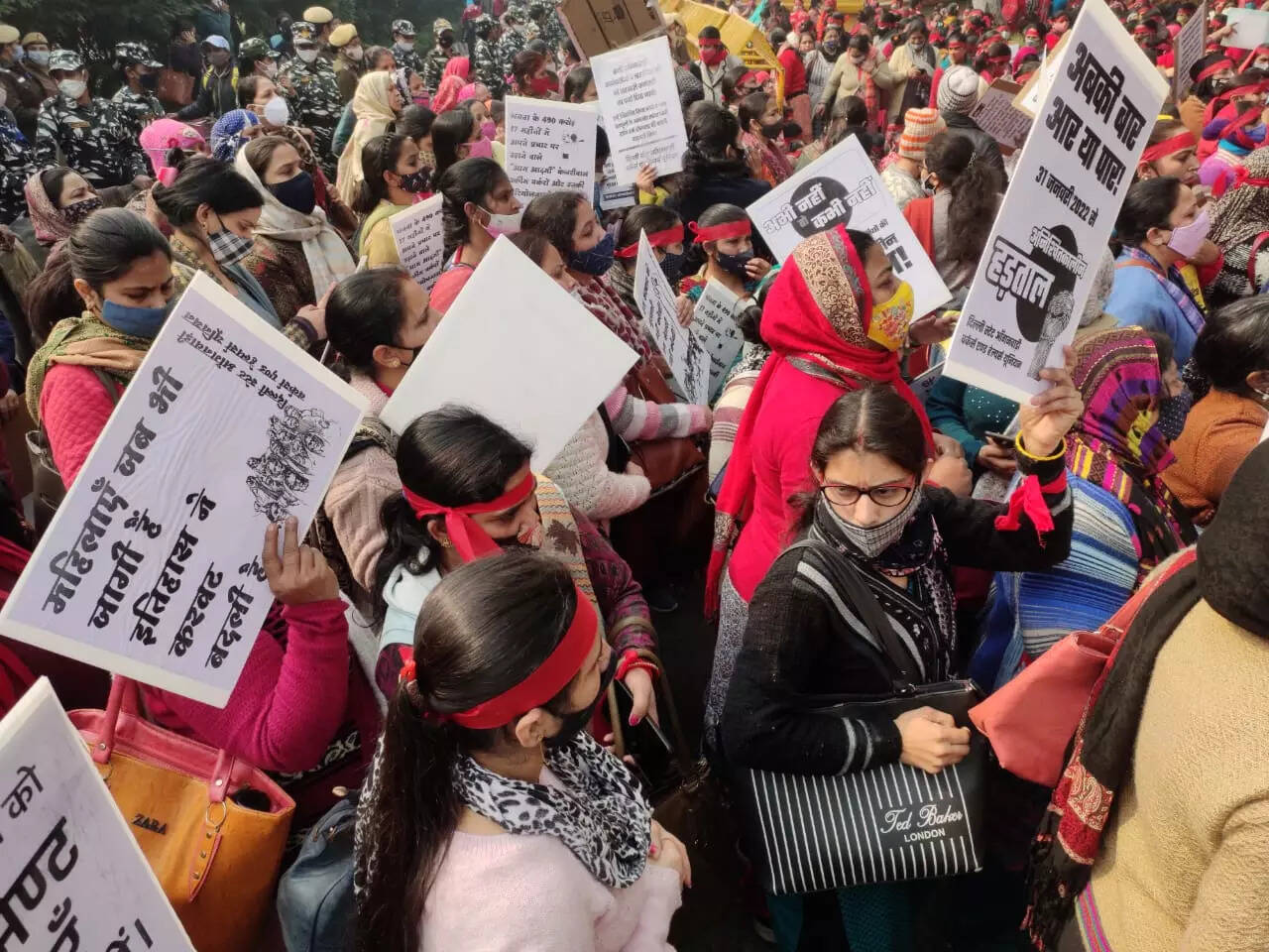 NEW DELHI: Hundreds of Anganwadi workers staged a protest near Delhi chief minister Arvind Kejriwal's residence at the Civil Lines in the national capital on Monday to press for their demands, including recognition as government employees.