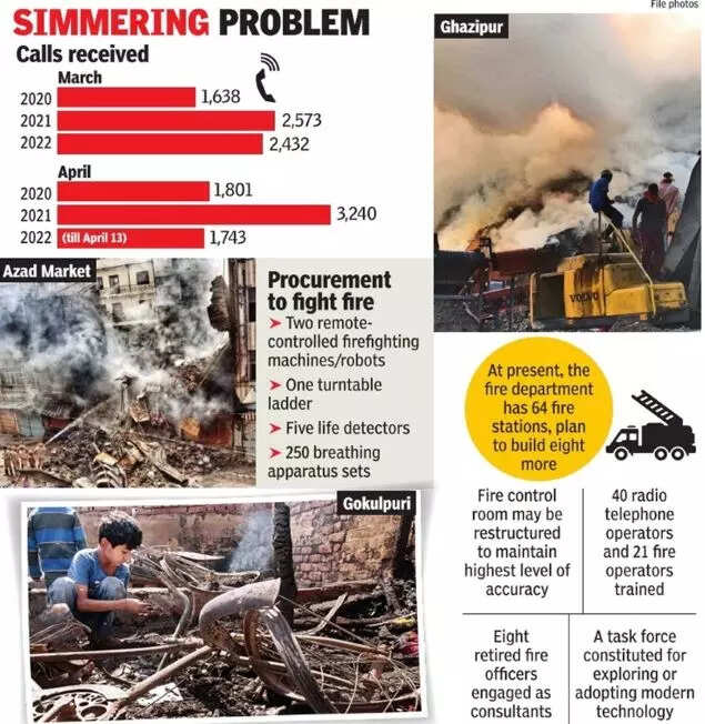NEW DELHI: This year, perhaps due to the unusually high day temperatures and dry weather conditions, calls to Delhi Fire Service have gone up compared with alerts last year in the same period. This month till April 13, the fire department has received 1,743 calls, mostly about garbage and house fires and electrical short circuits.