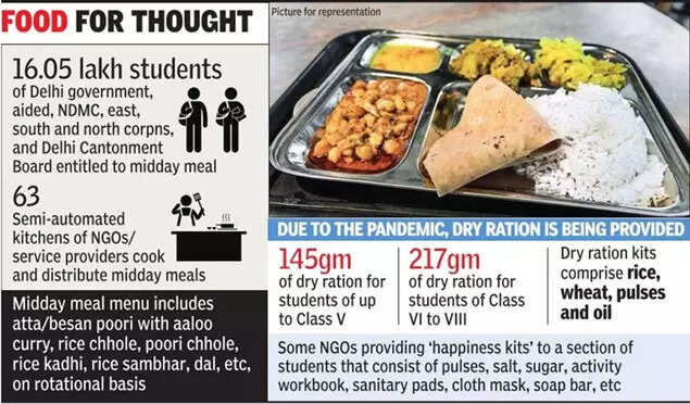 Delhi government, in a statement, said currently only 50% of students were attending physical classes. “In such a situation, if midday meals are given, only half the children will benefit. To ensure 100% coverage, door-to-door delivery of dry ration is being done. As soon as there is 100% attendance in schools, midday meals will be started,” it added.
