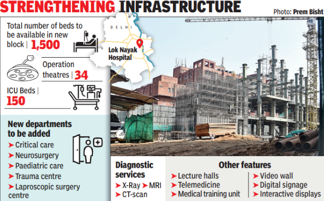 “The new block will have greater focus on maternity and advanced paediatrics, along with medicine. There will be a specialised maternal fetal medicine unit in the new building,” said Lok Nayak medical director Dr Suresh Kumar.