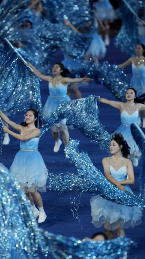 <p>Artists perform during the opening ceremony of the 19th Asian Games at the Olympic Sports Centre Stadium, in Hangzhou, China.<br /></p>AP