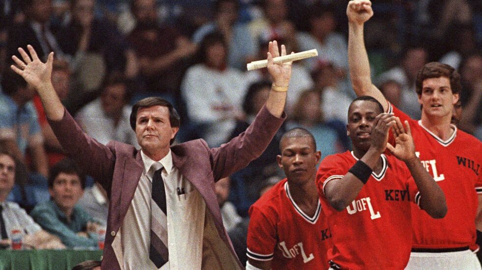 Nicknamed “Cool Hand Luke” because of his cool, unflinching sideline demeanor — legend has it he never uttered a curse word — Crum retired in March 2001 after 30 seasons at Louisville with 675 victories, which ranked 15th all-time then, and championships in 1980 and ‘86. The disciple of legendary UCLA coach John Wooden often wore a red sport coat and waved a rolled-up stat sheet like a bandleader’s baton as he directed Louisville to 23 NCAA tournaments and six Final Fours. The second half of his tenure was not nearly as successful as the first, however, as Louisville endured two separate NCAA investigations and never returned to the Final Four after Crum’s second championship season.
