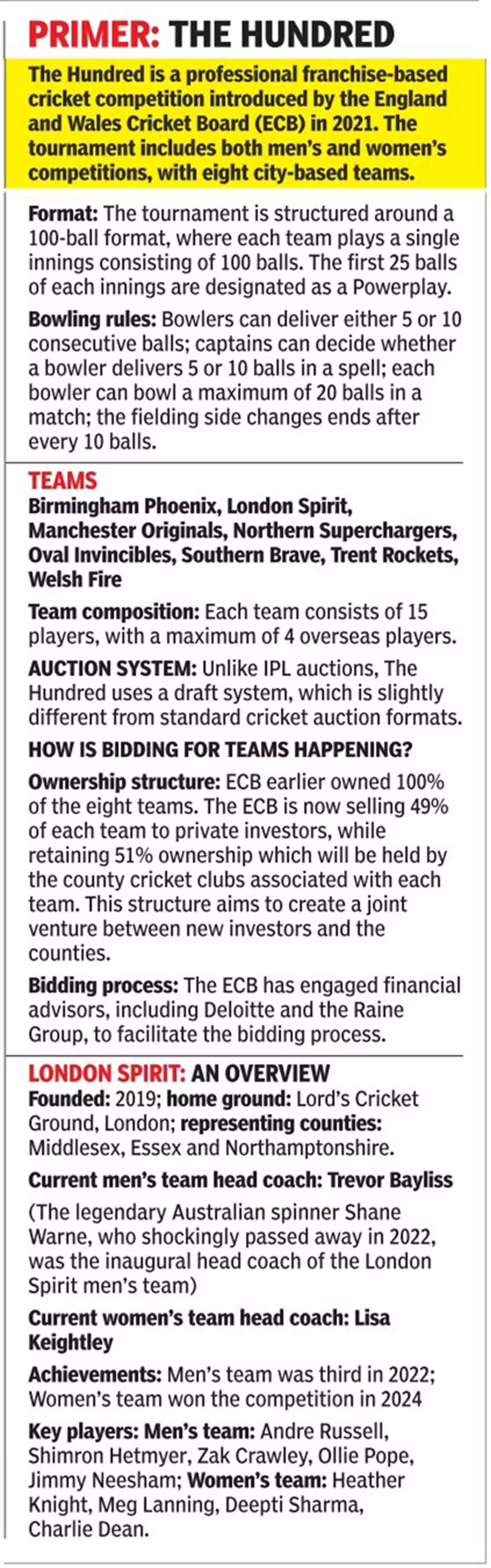 LONDON: A consortium of US-based Indian techies have won the bid to own 49% of The Hundred's Lord's franchise London Spirit.
