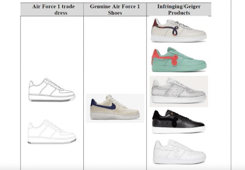 Geiger and his attorneys maintained this narrative throughout the lawsuit, arguing that the similarities between the stitching on the GF-01 and AF1 were purely functional, keeping the shoes from falling apart. Per TFL, Geiger also argued — albeit unsuccessfully — that without Nike’s trademarked Swoosh, the GF-01 has little resemblance to the Air Force 1 sneaker. Overall, the court decided that while the GF-01 sneaker did not necessarily pose a threat to Nike’s AF1 sales, it was similar enough to continue the lawsuit.