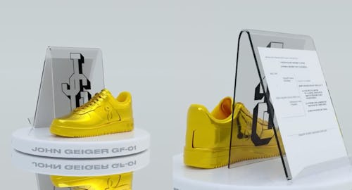 Geiger has announced he’s launching his first NFTs, and he’ll be doing so by using the very lawsuit Nike filed against him. Up for minting is Geiger’s GF-01 sneaker, the Air Force 1-lookalike that drew legal action, in gold, silver, and bronze. Each token will be accompanied by a physical version of the respective sneaker intended as a piece of art — as well as a copy of Nike’s lawsuit signed by Geiger.