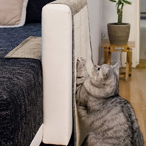 Cats are going to scratch — the trick is giving them a better option than your upholstery. This scratch mat is made with durable natural sisal fabric designed to satisfy clawing instincts while protecting your sofa or chair. It also doubles as an armrest organizer with two pockets that hold things like remotes, books, or phones — so it actually adds function instead of just clutter.
