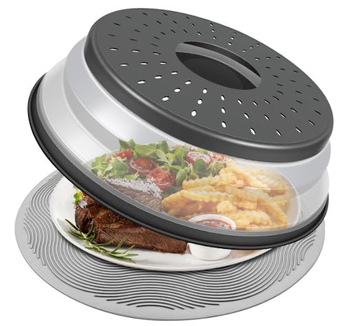This collapsible microwave cover stops splatters before they start. It adjusts in height to fit bowls and plates, protects the microwave interior, and includes a food-grade silicone mat that doubles as a trivet or drying mat. The cover is heat resistant and dishwasher safe, and it’s easy to grab without burning your hands.