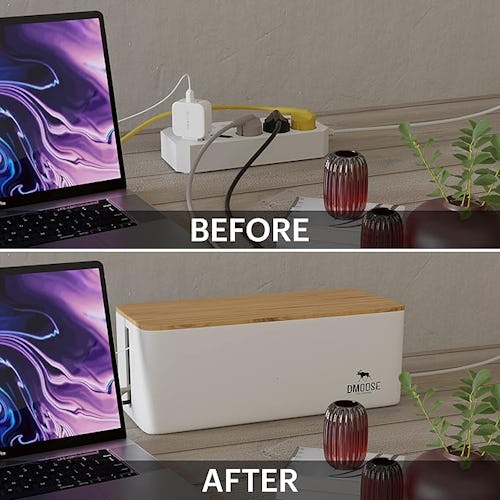 Don’t let a snarl of wires, chargers, and power bricks mar the appearance of your desktop. Pack it all into this cable management box and hide it from sight. It’s big enough to hold a full-sized power strip, so you can have power right on the desk without the mess. You can use the top to set things on, too. This is a two-pack in two sizes. It comes in four colors.